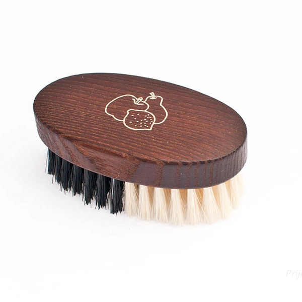 Dřevěný kartáček na ovoce se dvěma druhy štětin - měkké a pevné. Kartáček využijete například při zavařování ovoce - k čištění broskví, meruněk, hrušek... Kartáč je z přírodních materiálů - termodřevo a přírodní štětiny.