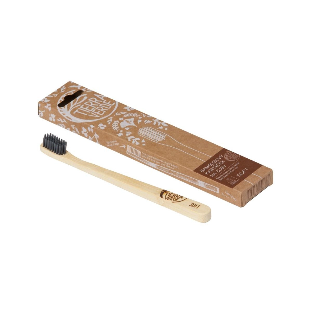 Rukojeť kartáčku je vyrobena z broušeného bambusu. Díky ergonomickému tvaru vám skvěle padne do ruky. Měkké štětiny se šetrně postarají o váš chrup. Jsou vyrobeny