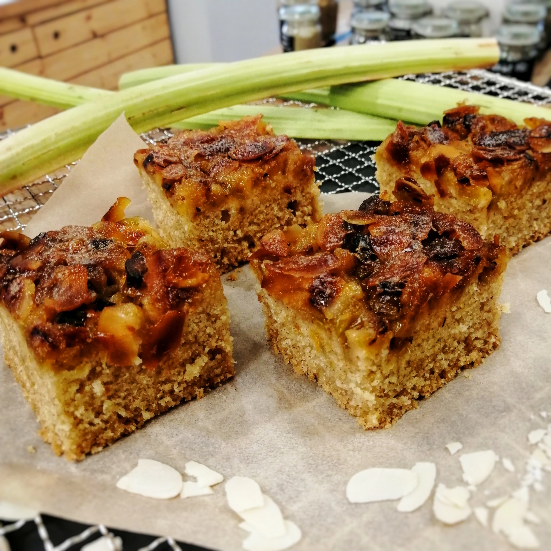, kokosové mléko, panela, rebarbora, Bio slunečnicový olej, aquafaba,